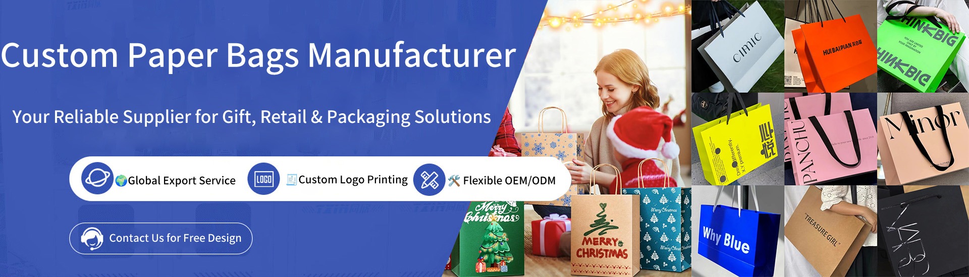 Paper Packaging: Custom paper bags, kraft gift bags, and corrugated boxes with logo printing.